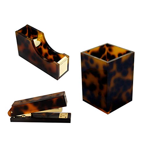 Multibey Amber Gold Set Desk Stapler Tape Dispenser, Pen Holder Pencil Cup, 24/6 Staples, Office Desk Accessories Organizer Decor