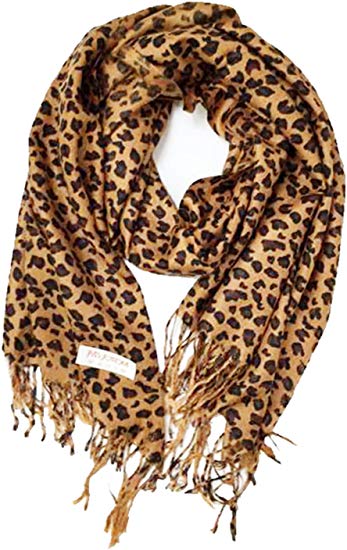 Animal Print Fringed Shoulder Pashmina Wrap Scarf - Leopard Zebra Patterns