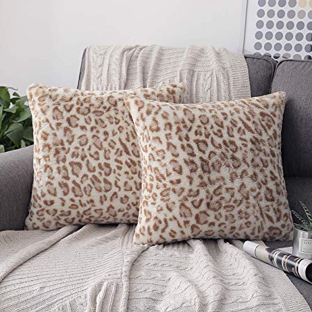 CARRIE HOME Soft Plush Leopard Print Faux Fur Lumbar Pillow Covers for Home Couch Sofa (Set of 2, 12x20 inch)