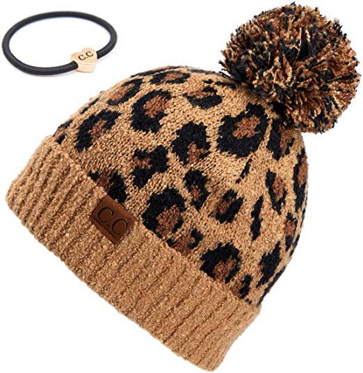 C.C Exclusives Soft Beanie hat with Leopard Pattern and Fur Pom(HAT-7001)(SF-7001)