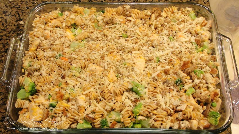 All baked and heated through! I wanted to experiment with a lighter dish, but you could add your own spin on it with more cheese or the addition of canned soups of your choice. Everyone loved it! The best thing is that it makes enough for a crowd so we had enough for another night of leftovers! I don't know about you, but leftovers are great for busy school nights!