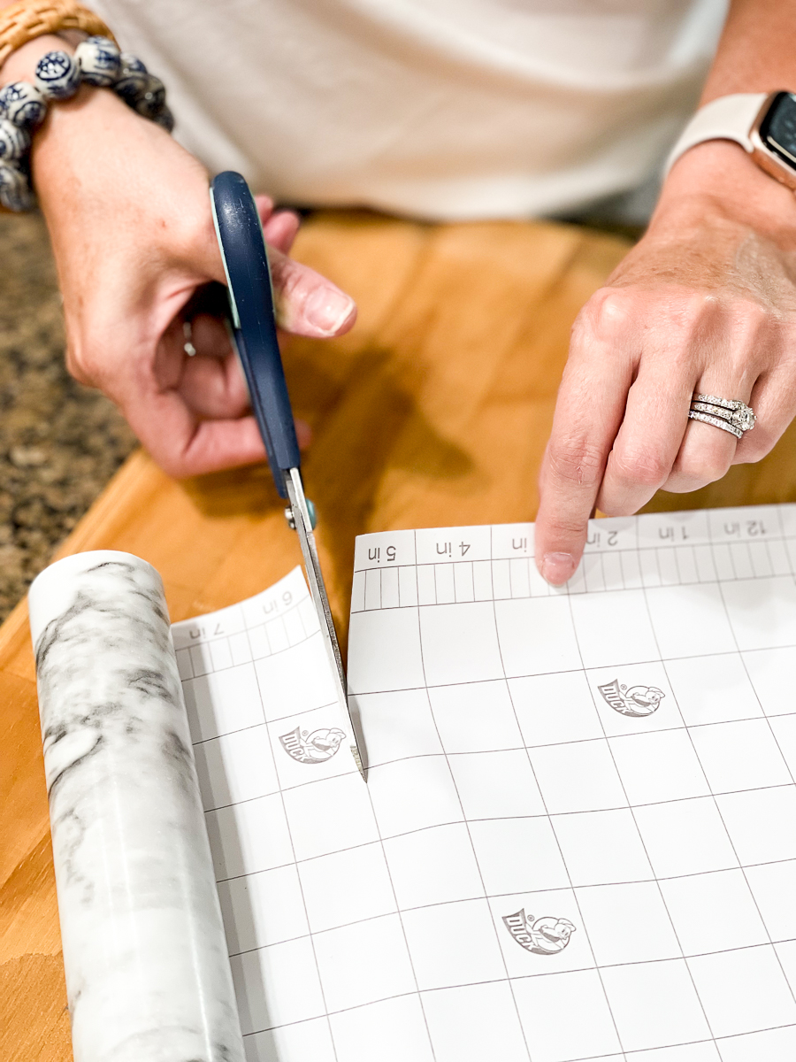 I made sure that the wood that I selected for this project was the perfect size for the width of the roll in the gray marble pattern. I didn't want to have seams to match up for this. I wanted it to look like a continuous piece of marble. Removable Adhesive EasyLiner® in the gray marble is so realistic!