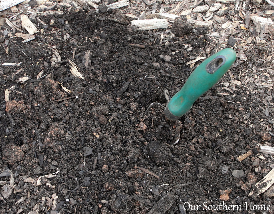 My daughter and I worked the soil digging a hole and adding some fresh potting soil mix. I like to create a slight mound to grow vegetables. That way when heavy rains fall, water won't stand around the plant.