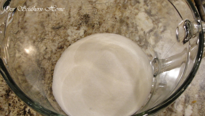 I place the 1 cup of sugar in a 2 quart Pyrex measuring bowl while my tea kettle is boiling.