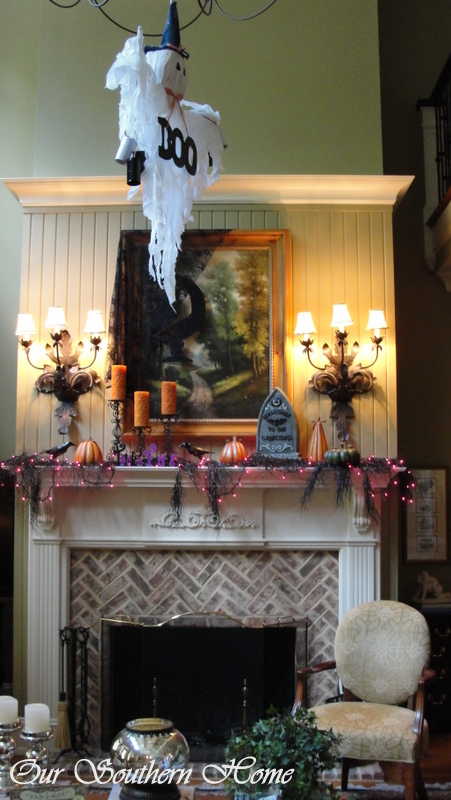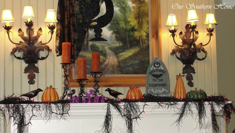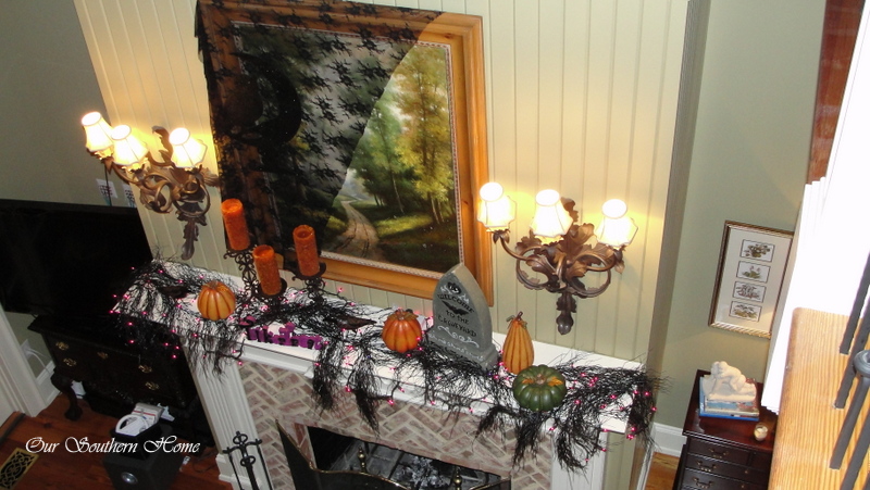 The majority of the Halloween decor you see here as evolved over the years with after season sales. I did purchase the pumpkins at the regular discounted price at Tuesday Morning.